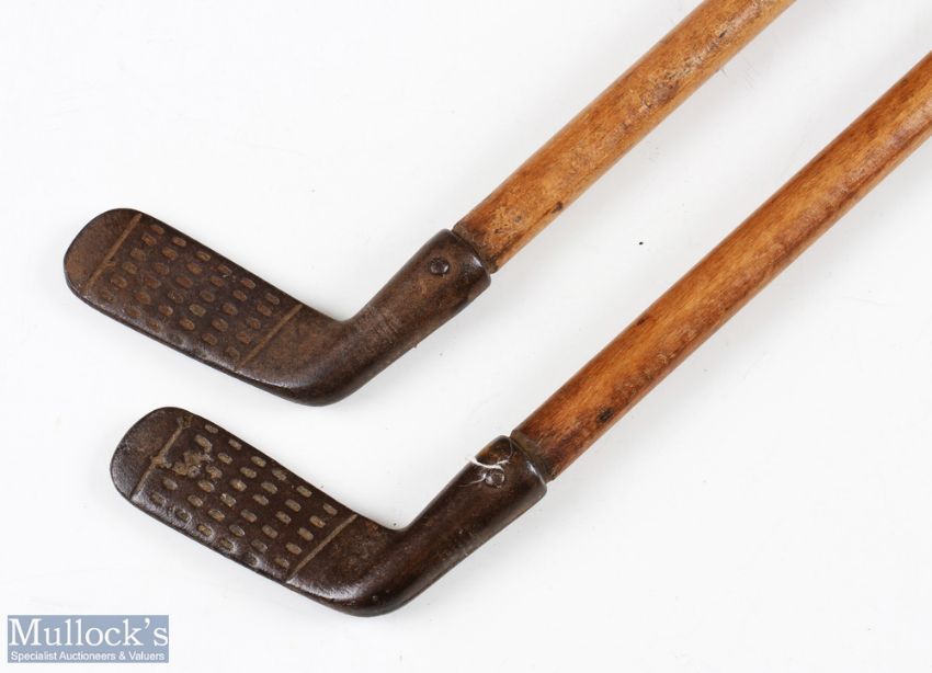 2 x Period Children's Golf Clubs, British made marked unbreakable with wooden shafts #63cm long