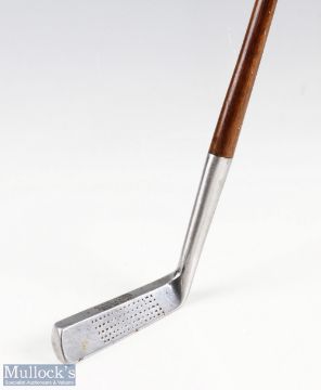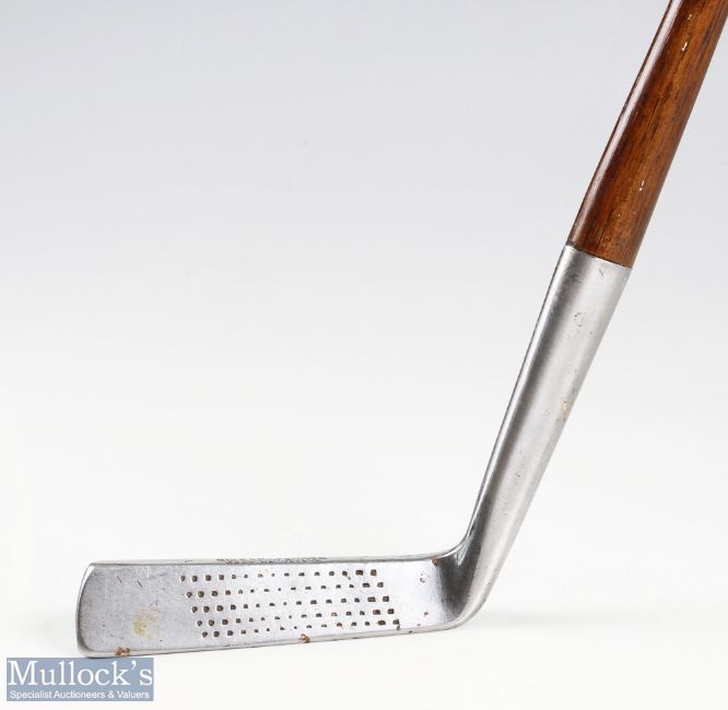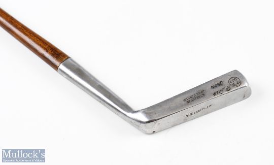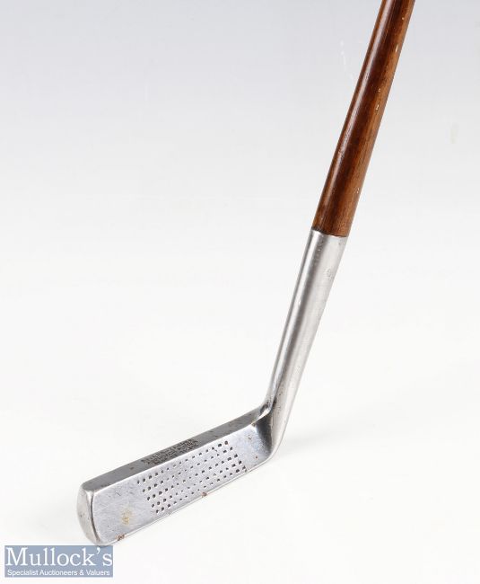 Rivers Zambra Approach Pat. Putter - stamped registration number 740970 to the head and The Scuffler to the sole - fitted with an oval hosel and the original full length leather grip