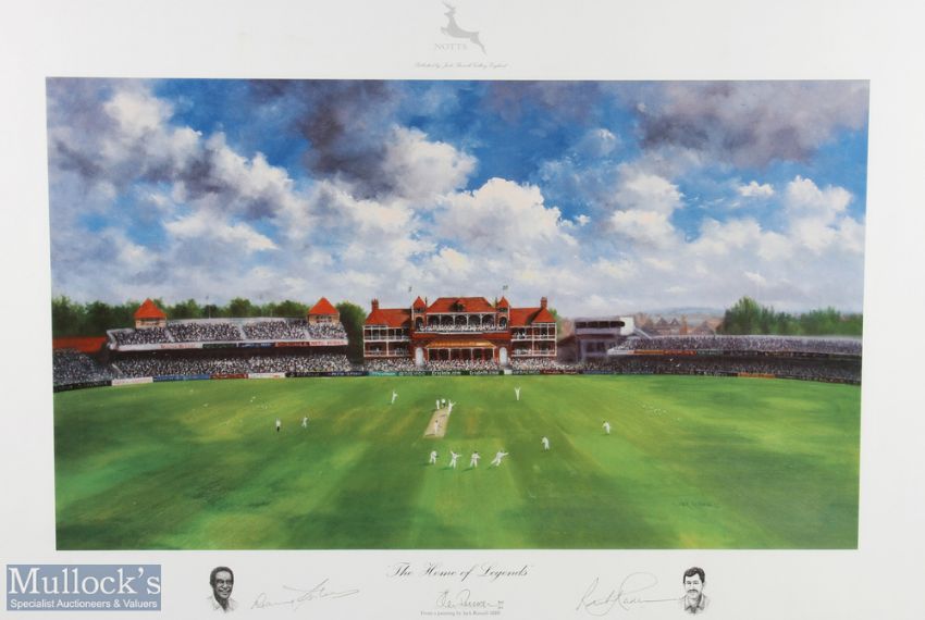 The Home of Legends Autographed Cricket Print signed by Gary Sobers and artist Jack Russell, colour print limited edition 307/310, framed measures 92x66cm approx.