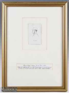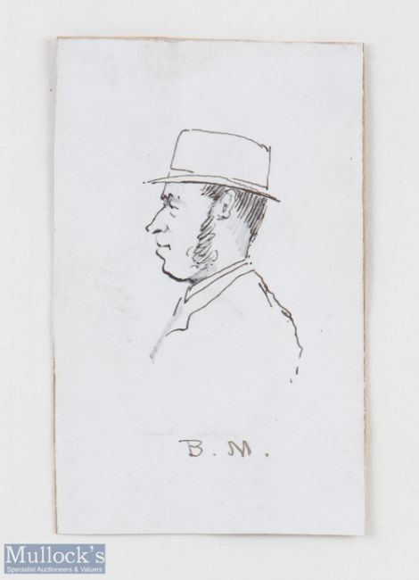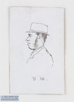 THOMAS HODGE (b.1827-d.1907) - Royal and Ancient Golf Club St Andrews Personality- head and shoulder portrait sketch titled "B.M" c1889 c/w typed details below - image 4" x 3" - mf&g 15.25 x 11". Note: Part Five - Golf Collection from "David Easby Estate"