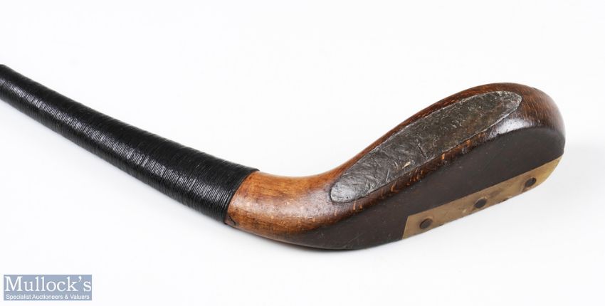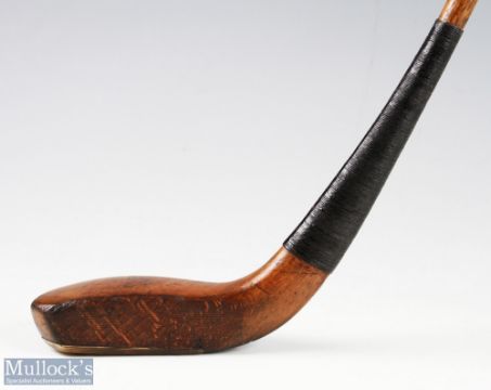 Fine F H Ayres late longnose beech wood putter c1890 - c/w makers shaft stamp just below the original full length hide grip with underlisting. Note: Part Five - Golf Collection from "David Easby Estate"