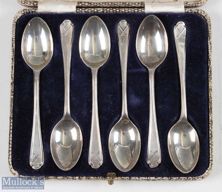 Cased set of 6 hallmarked silver Walker & Hall golfing teaspoons, each hallmarked Sheffield 1932/1933, total weight 80 grams