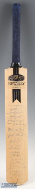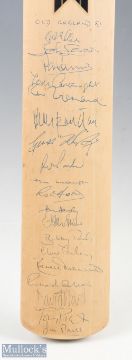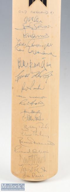 Old England 1997 Autographed Cricket Bat featuring David Allen, Brian Luckhurst, John Lever, Derek Underwood, Roger Tolchard, John Snow, Robin Hobbs, Geoff Humphage, Bob Parks, Tom Cartwight etc, on Newbury Handmade Series bat - good signatures