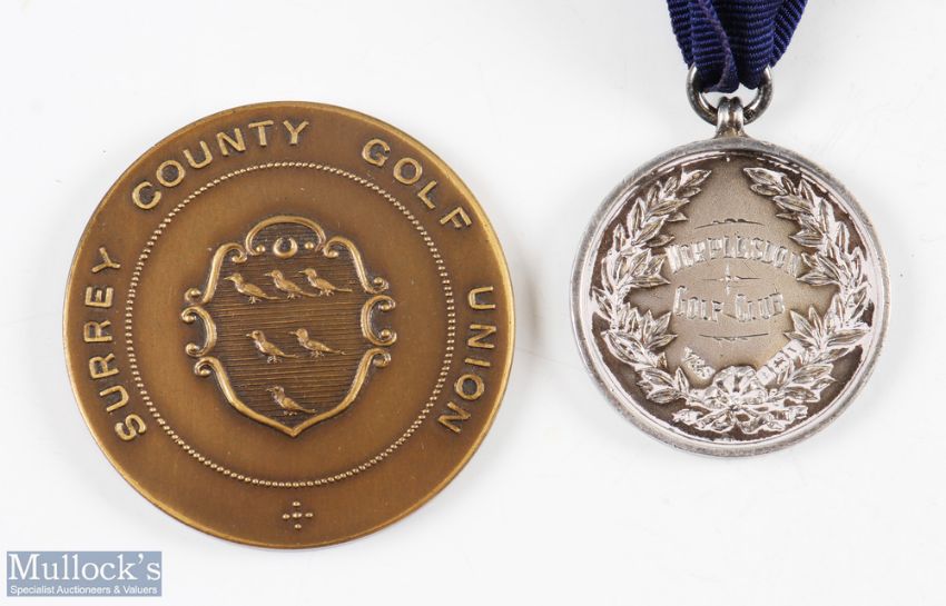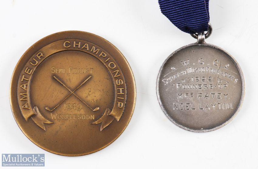 2x Worplesdon Golf Club medals from 1922 onwards-including 1922 Scratch Mixed Foursomes Runners-Up Silver medal - won by Mrs Patey and Noel Layton hallmarked Birmingham 1921 made by Vaughton; and 1949 Surrey County Golf Union Amateur Championship Semi Finalist Bronze medal won by Worplesdon 2.75" dia. Note: Part Five - Golf Collection from "David Easby Estate"