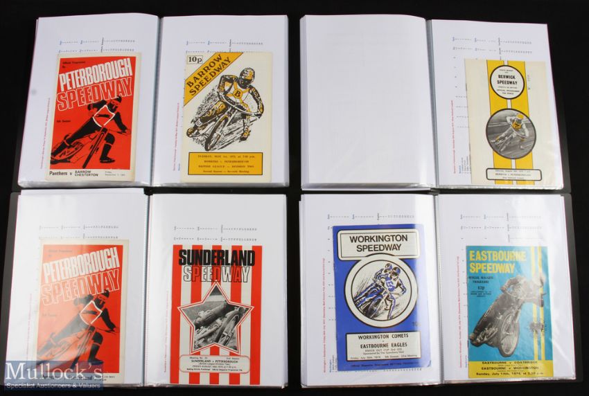 1972-1975 British League and New National league Speedway Programmes, 4 binders of complete years home and away meets, comes with a printed card of teams and results all with score card unfilled, in very good condition #266