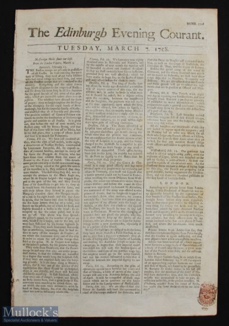 1758 - Leith Golfing Announcement in The Edinburgh Evening Courant newspaper Tuesday 7th March - "by order of Robert Clark present captain of the golf and his council - that the Silver Club given by the good town of Edinburgh to the gentlemen golfers to be played for on the links of Leith on Saturday, 11 March inst., Arch Govane, Secretary"