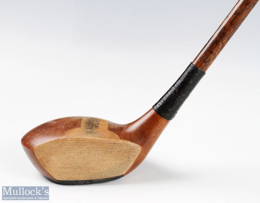 Ben Sayers Selected light stained large headed lofted driver - c/w makers shaft stamp just below the Retailers Thornton & Co Ltd stamp mark - full length replaced hide grip - full restoration c/w circular lead sole insert - ready for the bag