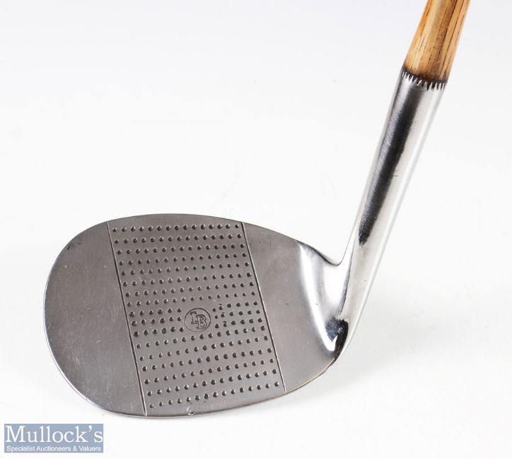 Fine Lockwood Brown Mammoth niblick - head measures 4.5"x 3.5" - stamped Niblick to the leading edge sole - LB to the centre of the dotted face - Saville Special to the head - plus R Forgan & Son Selected St Andrews stamp mark to the shaft just below the original leather grip with underlisting