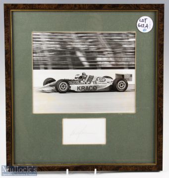 1990 Bobby Rahal Indy Car black and white photograph with mounted signature underneath, mounted under glass, size# 37cm x 42cm