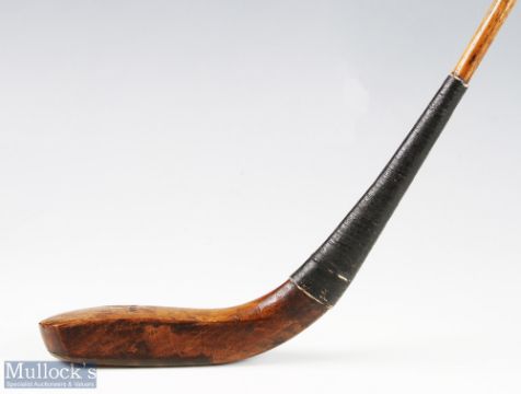 Early McEwan longnose light stained fruit wood play club c1865 - heads measures 5.75" x 1 7/8" x 1" overall 44" - fitted with period style hide grip with thick underlisting - replaced horn sole insert and other renovation to the sole. Note: Part Five - Golf Collection from "David Easby Estate"