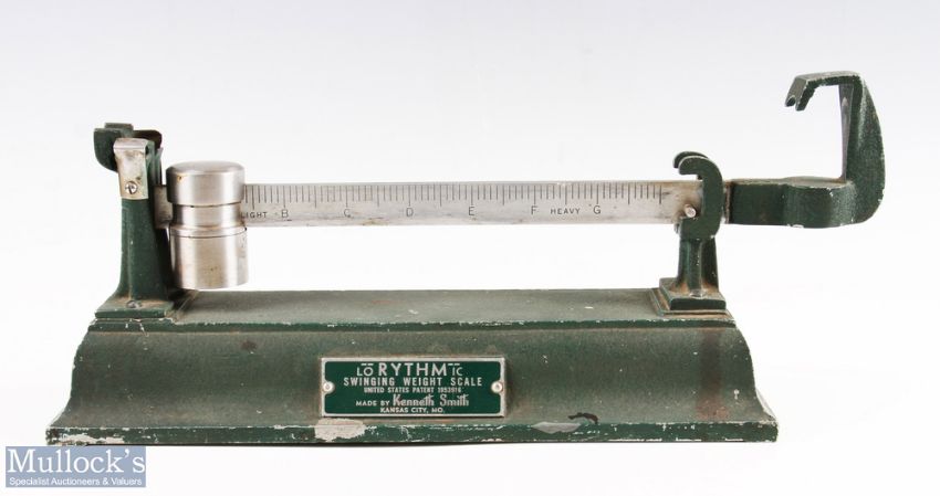 Kenneth Smith USA Swinging Weight Scale 'Lorythmic' patent number 1953916 with maker's plaque, measures 16" approx. in length
