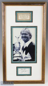 Jack Nicklaus Golf Open Winner Photograph, a winner of all four majors mounted with a strong signature underneath, mounted and framed under glass-size 38cm x 72cm