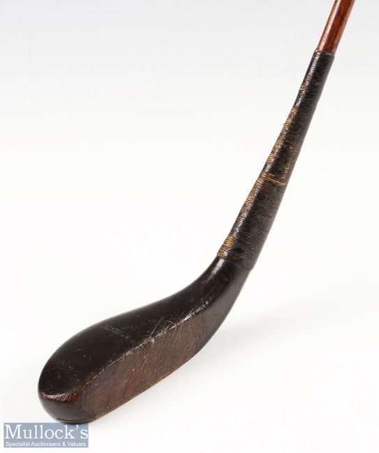 Ry (Ramsey) Hunter Royal St Georges dark stained longnose beech wood play club c1888 - head 5" x 1.5/8" x 1 1/8" overall 44" - fitted with the original hide grip with thick underlisting. Note: Part Five - Golf Collection from "David Easby Estate"