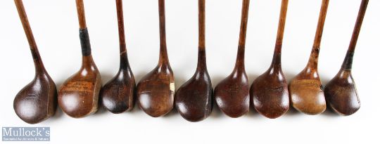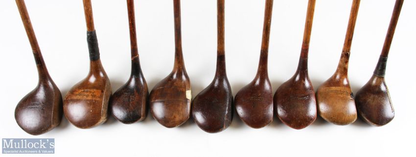 9x Various Golf woods - features R Forgan driver, GL Howey, St Andrew Golf Co special, J Crowley special, Stanmore special et al - 2x without grips - for repair or restoration A/F
