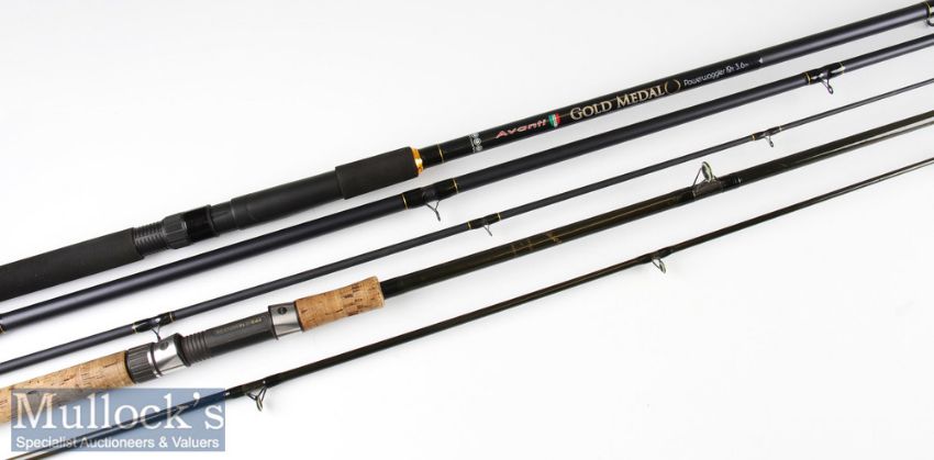 2x very good Carbon Speciman rods - Unused Avanti Gold Medal Powerwaggler 12ft 3pc Vitreous Interweave Crossfibre - very lightly used in blue cloth bag; and good Laser "Hunter Mk.IV Carbon" 11ft 2pc with fuji lined guides throughout - 26" cork fitted with fuji screw locking winch fittings - lightly used - in blue cloth bag