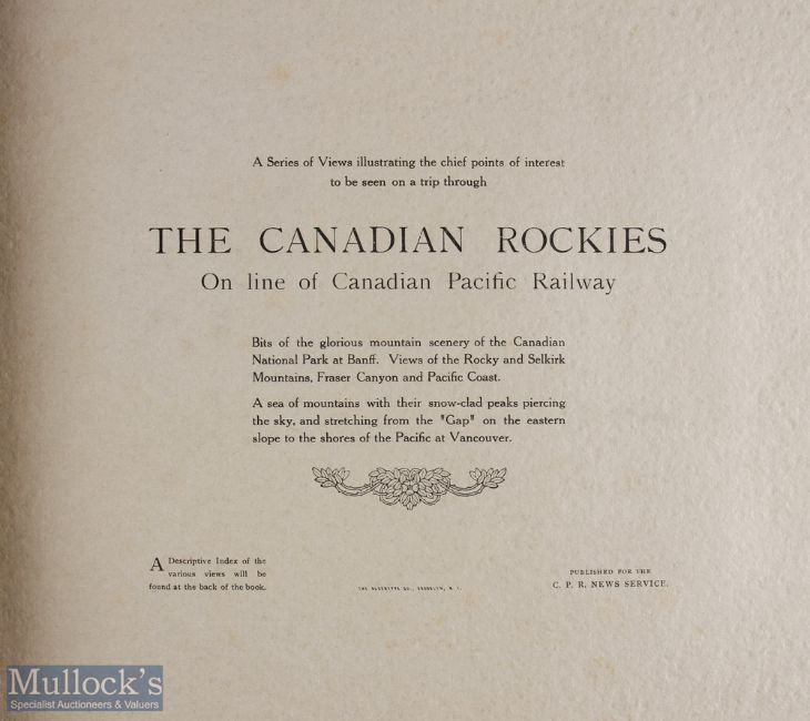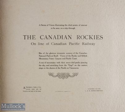 Canada - Canadian Rocky & Selkirk Mountains - portfolio album, online of Pacific Railway c1900, has 24 large impressive photographs of the Mountains and the Railway running through them. In large card cover, size 12 1/2" x 10 1/4"