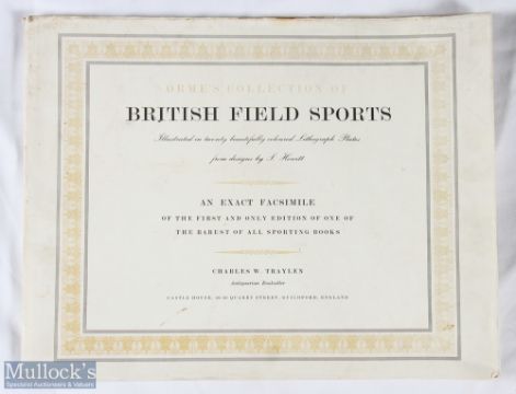 c1955 Exact Facsimile Orme's Collection of British Field Sports illustrated in Twenty Beautifully Coloured Engravings from Designs by S Howitt by ORME, Edward, large folio book, all 20 plate inside, plate 4 has a mark to its border, paper covers are loose, comes with a rolled print of the loose horse Michael Lyne