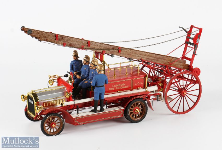2x large Model Kit Fire Engines both are built kits, a model of 1914 Dennis fire engine London Fire brigade kit with firemen figure by Bandai, -this is fully made kit, looking almost complete, plus a 1911 American Christine steam fire engine by MPC, this also is built, but has damage with loose parts and might be missing parts - NB collection only as these will not survive been posted