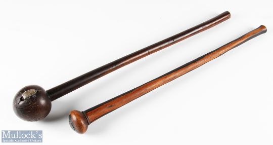 African Knobkerrie and Rungu clubs - Zulu knobkerrie club with metal weight to head, length 55cm, and a Rungu club, length 51cm (2)