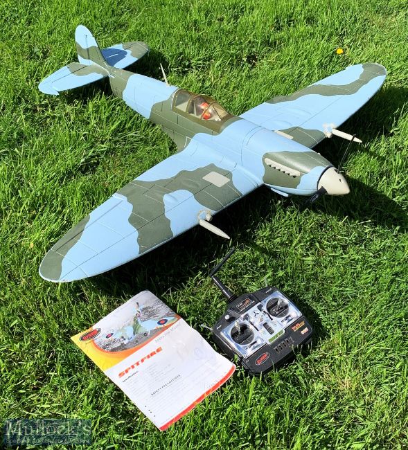 Large Radio-Controlled plane Dynam WWII Spitfire Aeroplane Model, 47" wingspan overall length 40" - this is loose with no box complete with battery and charger, instructions, has some signs of wear. NB this is to large item and is collection only