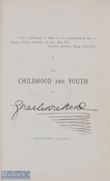 Autograph - Dickens - Robert Langton, The Childhood and Youth of Charles Dickens, First Edition 1883. With Autograph Signature of Dickens on a slip of paper affixed to inside. Bookplate of Richard A Hoblyn. This is the original first edition, produced for subscribers only. Has one loosed end paper, otherwise G
