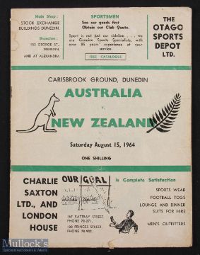 1964 Australia v NZ Rugby Programme: From the test at Dunedin on Aug 15th, 20 large pp issue. From the collection of 1970 All Black Grahame Thorne. Well-worn but entire, detailed & attractive