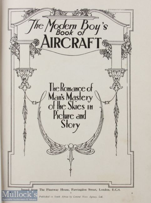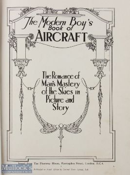 A Modern Boy's Book of Aircraft c1930 - an interesting period 192 page book with some 20 illustrations and photographs of aircraft and airships. Has a chapter about Croydon Airport and 7 related Photographs, also chapter about Airships plus 8 photograph. All in large cloth board cover with tipped in multicoloured illustration of Schneider Trophy air racing on front cover, size 8 3/4" x 11"