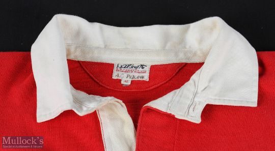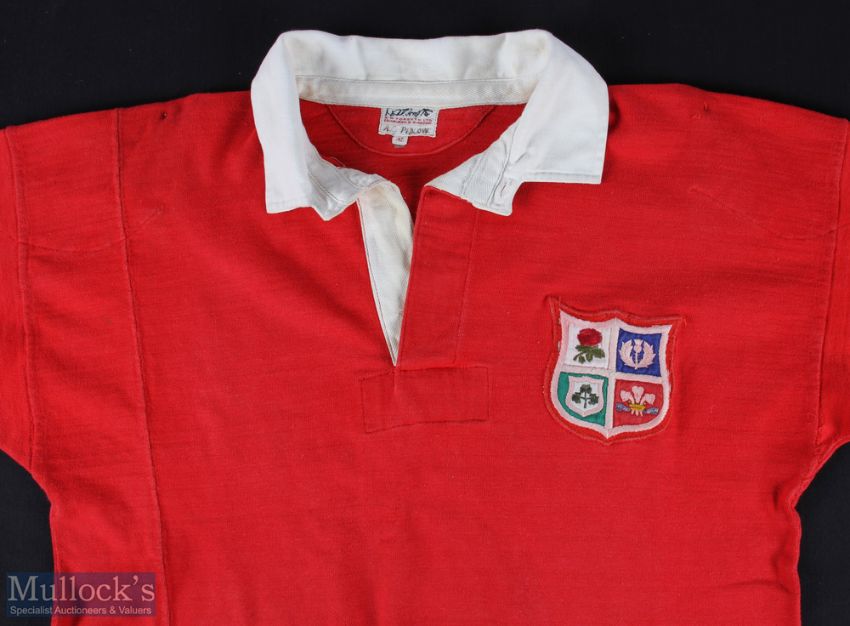 Super rare 1955 British & Irish Lions Matchworn Rugby Jersey: Bearing his tour number of 18 in white, the close-to immaculate scarlet Lions' jersey of Ireland wing/centre and dentist AC 'Cecil' Pedlow, who played in two of the tests on that trek. Made by Forsyth's in Scotland and named to Pedlow on the label, it has the traditional Lions' four-countries' badge to the breast, size 42", and some quilting to the shoulders and elbows, doubtless helpful on the hard grounds of the high veldt. Pedlow (1934-2019) was a talented all round international sportsman despite his far from sharp eyesight, and a popular tourist and figure. The jersey was exchanged on tour with Springbok opponent Theuns Briers. This is a marvellous chance to own and preserve a lovely piece of historic rugby memorabilia. Excellent condition