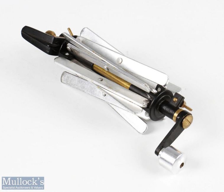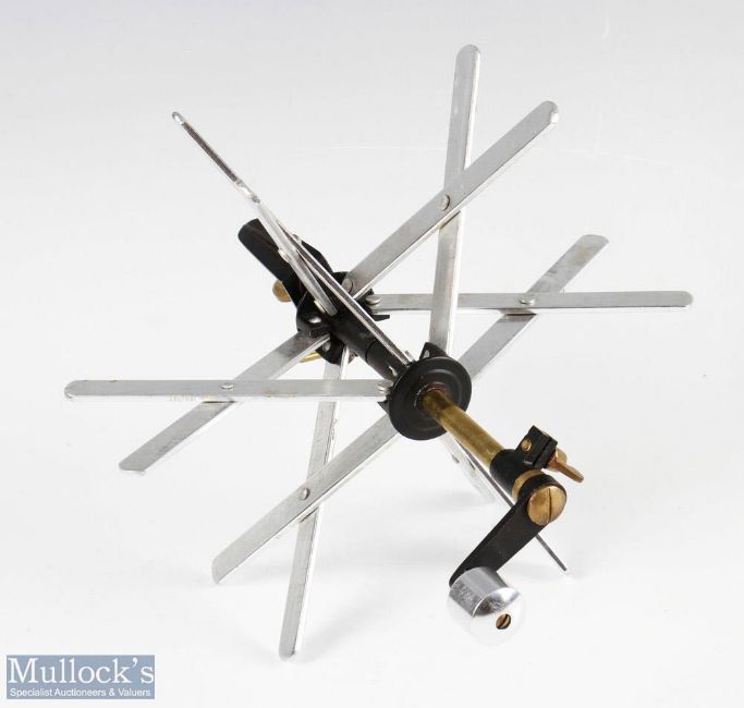 Farlow's style Sextile line dryer with brass clamp, brass and alloy structure, appears in good condition overall, measures 25cm in length total, no apparent maker's marks