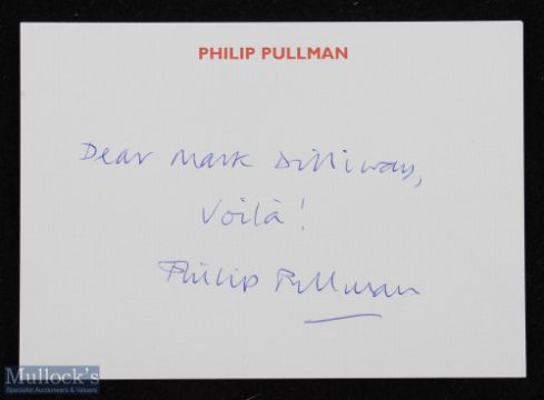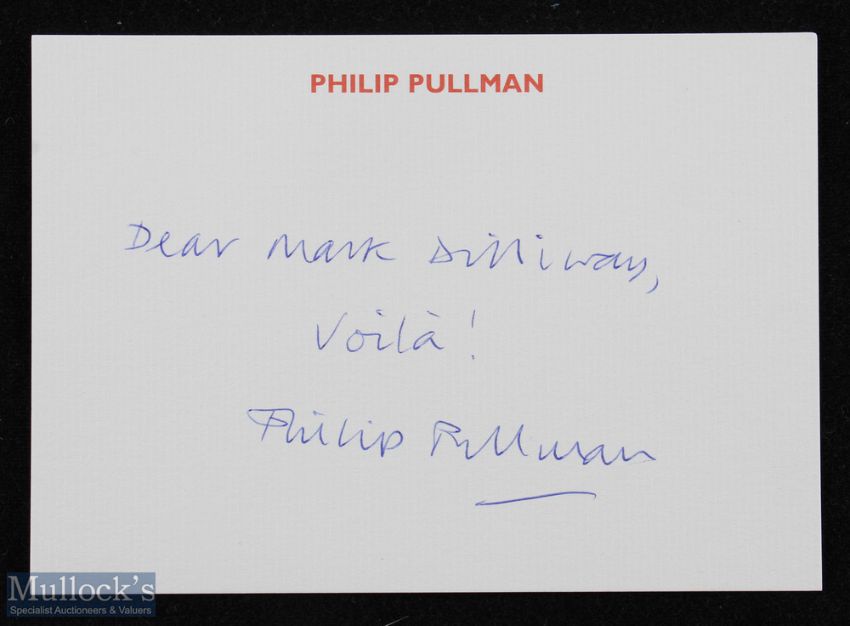 Philip Pullman - Northern Lights, first edition, first printing, with 'Point' on spine, no number line on copyright page, and price on jacket of £12.99, and with an address of 7-9 Pratt Street on the rear flap. This is the first book of Pullman's 'His Dark Materials' trilogy, and one of only 2000 copies printed, with first state jacket. Loosely inserted is a card signed by Pullman - Dear Mark Dilliway - Voila! Philip Pullman. There is a hand written note about the book to the first blank page which has been taped in with surface tears / surface loss to the paper of said page with tape repairs to the inner spine between the two title pages.
