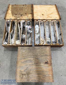 3x Wooden Model Railway Storage Crates, for transporting/storing O gauge locomotives and rolling stock, each crate measures 55cm x 56cm x 15cm and has 5 compartments. Homemade boxes made of plywood and pine (3)