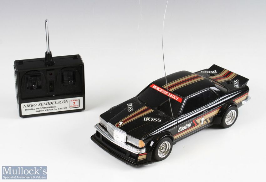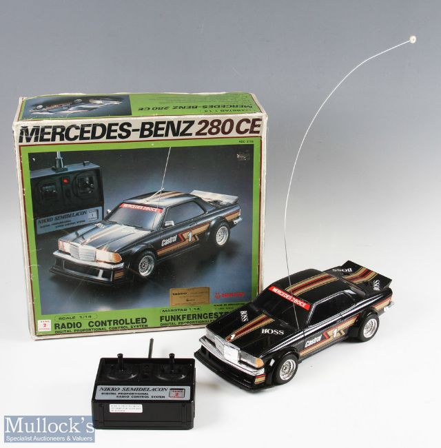 Nikko Radio Controlled Mercedes Benz 280CE 1/14 Scale Car in black Boss livery with controller, boxed, appears overall good