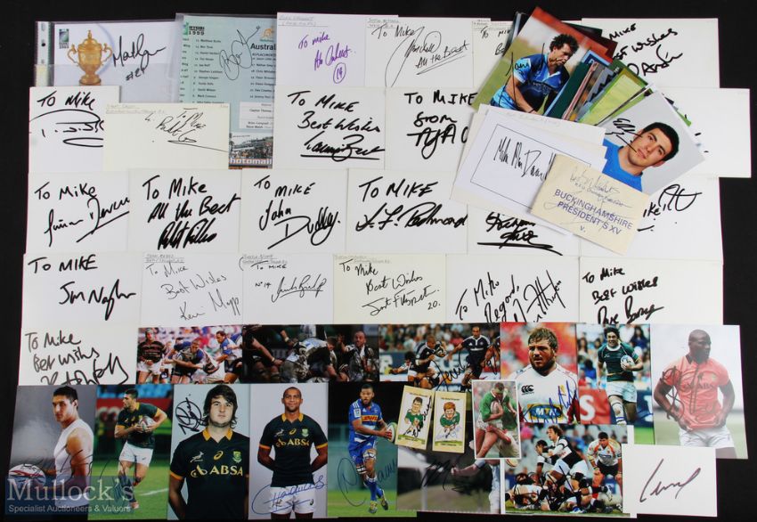Rugby Autograph Card Collection (80+): Close to 30 top players collected on card etc in 1997, and 50 more from across the years, inc SA & Australia, on cards, photocards and pictures (plus Terry Wogan!!). Lovely lot