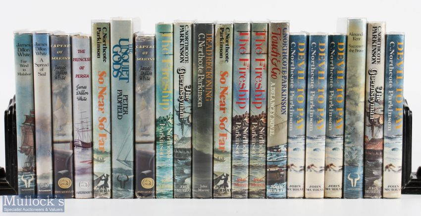 Naval - C Northcote Parkson carton of books, mostly novels all on naval themes, including titles by C Northcote Parkinson, James Dillon White, Alexander Kent, C S Forrester, Peter Padfield, approx. 21 titles in all, DJs present, appear good condition throughout (box)