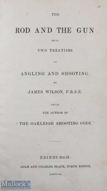 1840 The Rod and the Gun, Being Two Treatises on Angling and Shooting, James Wilson Adam Charles Black Edinburgh 1st edition rebound book in cloth boards