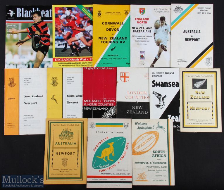 1951-1997 Club & Region v Tourists Rugby Programmes (14): S Africa at Pontypool/Newbridge 1951 & Newport 1961; NZ at London Counties & Newport 1953-4; at Newport 1963; at Midlands 1967; Cornwall/Devon 1973; Swansea 1980 & England North 1996; Australia at Pontypool/Cross Keys 1957 & Newport 1957 & 1966. Plus Blackheath v Tonga 1997. Mostly VG