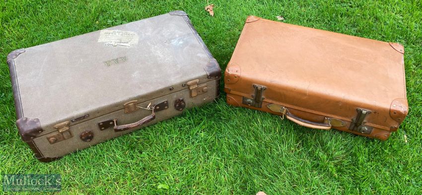Period Travel Suitcase a card case with leather corners and handle in good clean condition, plus another by Adkler Koffer with wear (2)