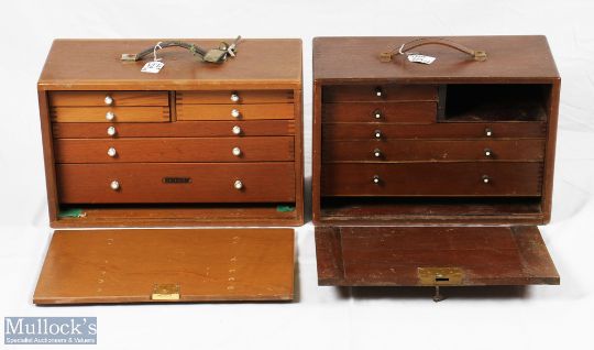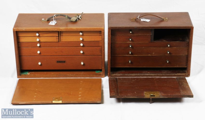 Union 7 Drawer Engineers Wooden Tool Cabinet Box Chest lined with green baize fabric inside, with 2 keys, plus a similar unbranded one missing 2 drawers, with wear (2)