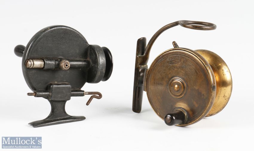 Mallochs Patent brass side casting reel, 3" spool with lever release, large domed horn handle, runs well; Allcocks Redditch Stanley reel, thread line, runs well (2)