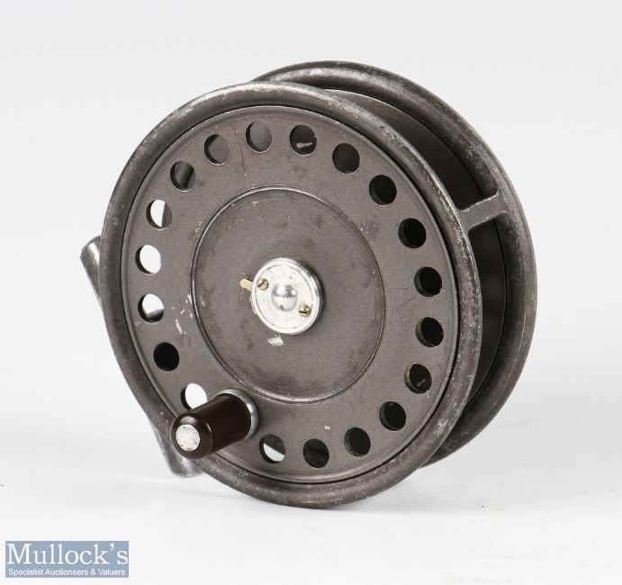 Hardy Bros "The St John" alloy trout fly reel, 3 7/8" spool, 2 screw latch, black handle, milled rim tensioner, in zipped case, signs of wear, runs very well