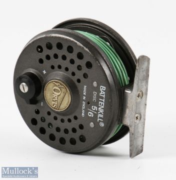 Orvis Battenkill Disc 5/6 alloy fly reel 3" spool with counter balanced black handle, rear mounted tensioner, alloy foot and chrome line guard, original zip case, light rim wear, runs well