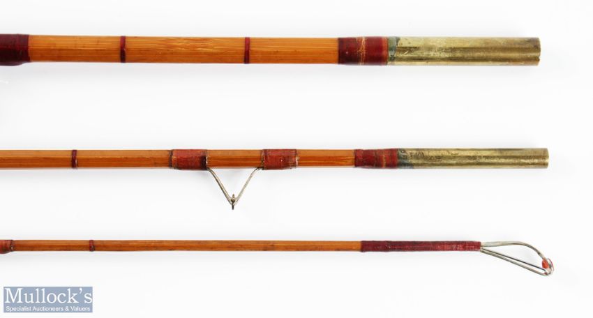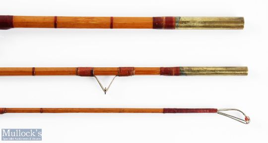 Edgar Sealey Octofloat split cane float rod 11' 3pc, 17" handle with alloy sliding reel fittings and collars, red agate butt/tip ring, light rust, cloth bag