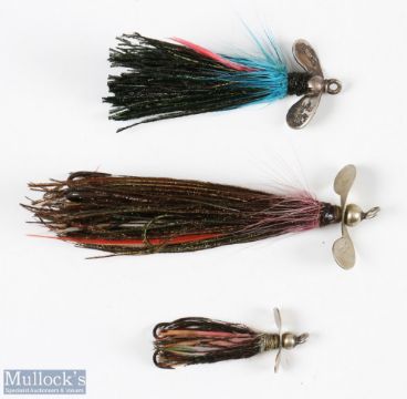 Hardy Bros Halcyon spinning lures (3) features sizes 2 1/4", 1 1/2" and 1" examples - all with treble hooks, all stamped Hardy Bros (3)