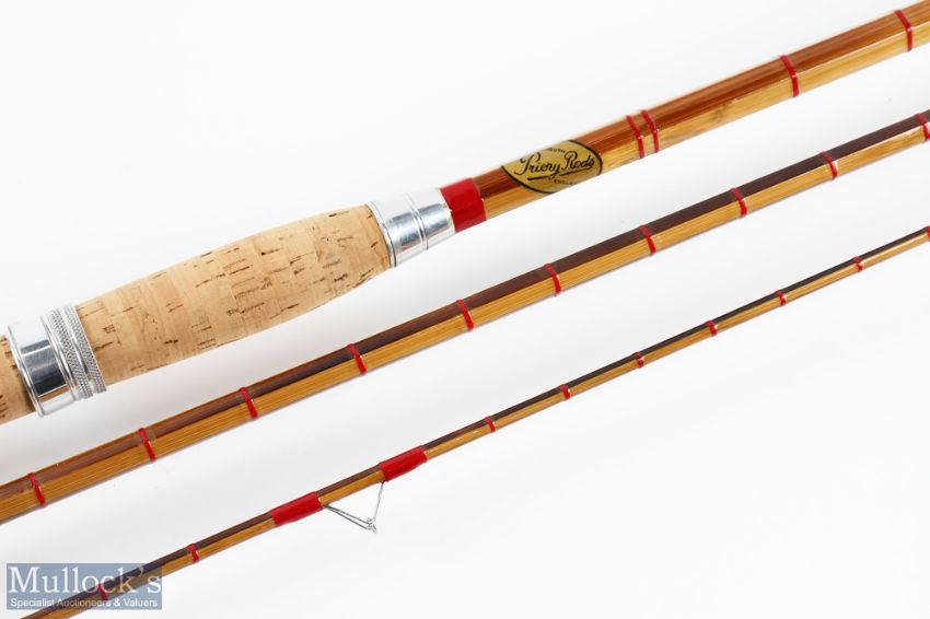 A fine restored Priory Rods Bournemouth split cane float/trotting rod 23" handle with alloy sliding reel fitting and collars, red agate butt/tip ring, ideal rod for Benjamin! Cloth bag, light use