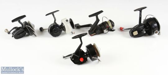 A collection of 5x reels, all showing signs of wear and requiring some attention - South Bend, Intrepid, FSP, 2x unnamed, in zip case
