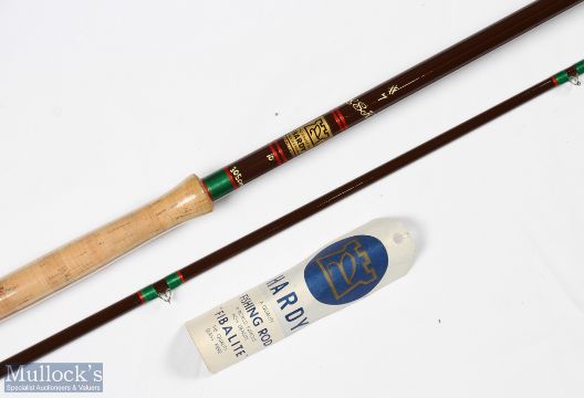 Hardy Alnwick Esk hollow glass fly rod 10' 2pc line 7#, alloy uplocking reel set, lined butt/tip ring, plastic on handle, original cloth bag, looks unused, with original label