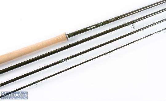 Guideline Exceed 38-42g carbon salmon fly rod 14' 8", 4pc, line 10/11#, 23" handle, double alloy down locking reel seat, lined stripping rings, Cordura tube, looks unused, plastic still on handle