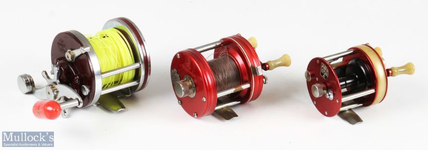Abu Sweden Ambassadeur 5000 multiplier reel seat No 413384, runs very well; Abu 1750A no seat Number! Runs very well; Penn Squidder seat stamped 30-49, runs very well (3)