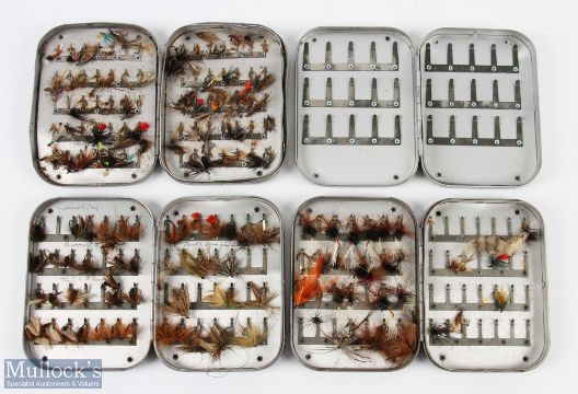 4x Richard Wheatley slim alloy fly tins with a selection of flies (not one S shaped!) (4)
