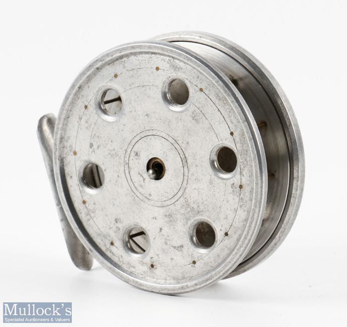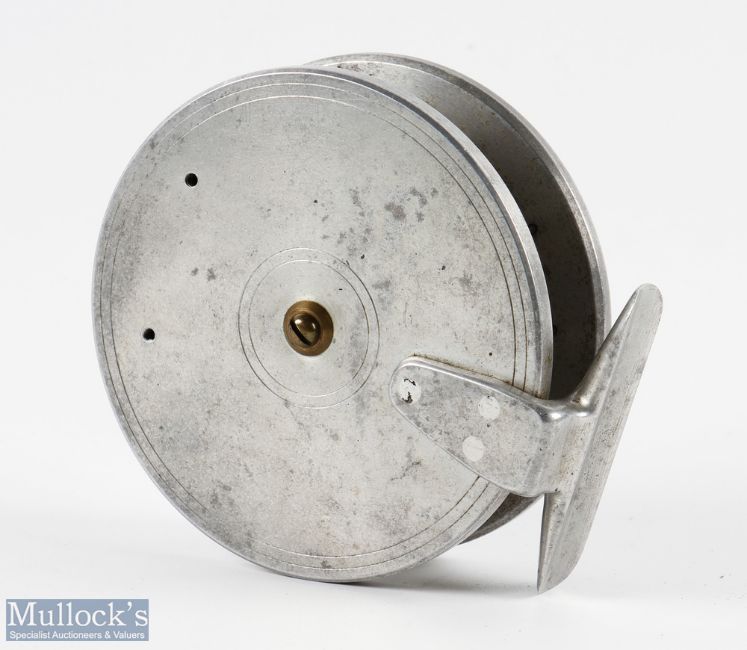 Unnamed custom engineered 4.5" centre pin reel with interesting latch design, no check, all alloy construction, shallowed caged drum core, spins well
